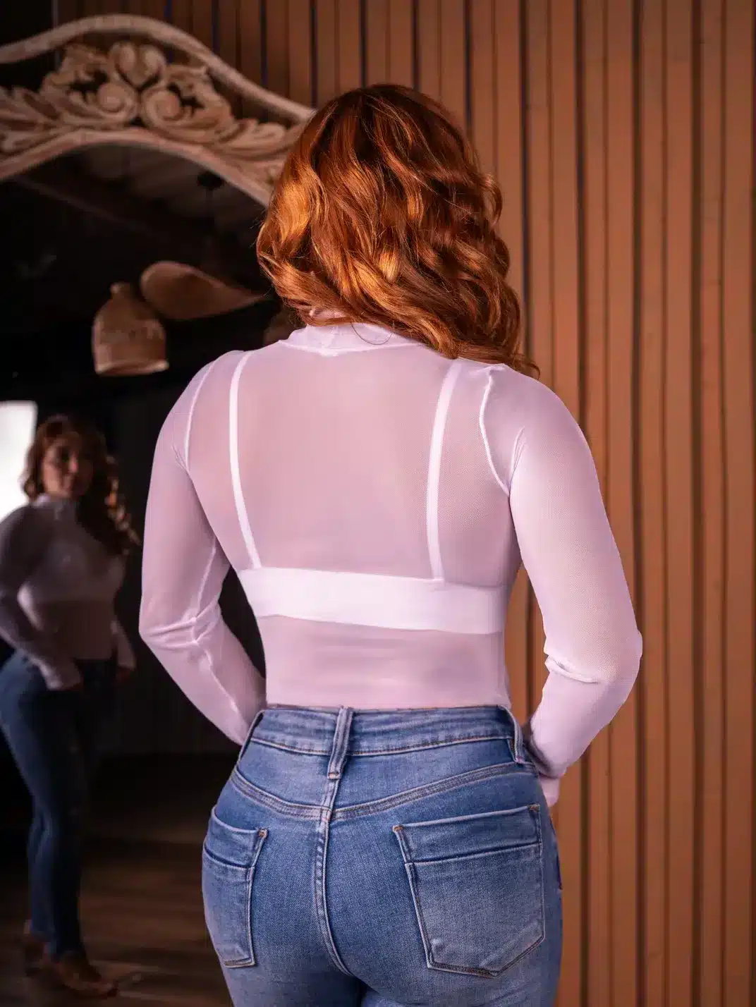 - Estilo Casual Chic: Combina tu **body transparente con pedrería** con jeans de tiro alto para un look moderno y brillante.