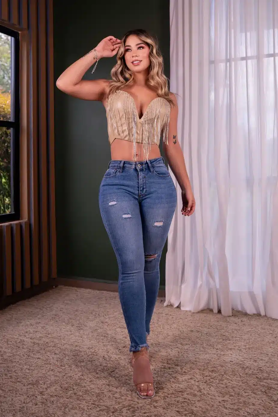 El Crop Top Leather Glam de Blanco Boutique es una pieza que combina fuerza, elegancia y sensualidad en una sola prenda. Diseñado en cuero sintético, su estructura firme moldea el cuerpo y realza el busto con un escote profundo en forma de corazón, adornado con cadenas de strass que caen delicadamente creando un efecto brillante y sofisticado.